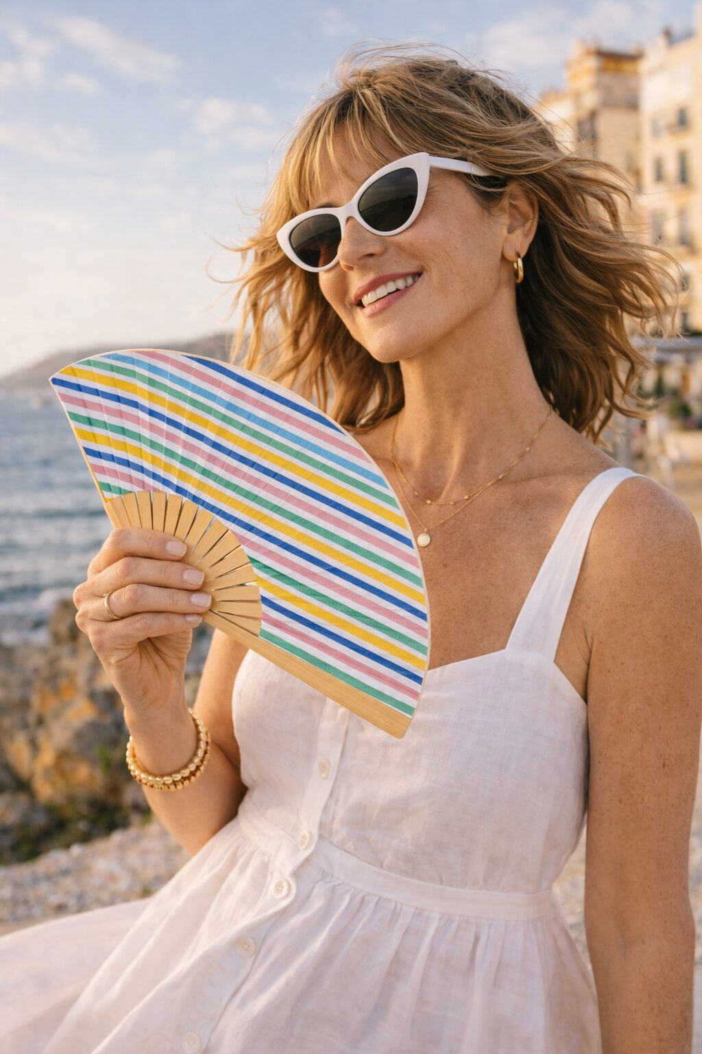L’éventail Françoise capture l’esprit des étés insouciants, entre lumière dorée, air marin et élégance naturelle. Inspiré par une féminité libre et lumineuse, il accompagne chaque instant avec fraîcheur et légèreté.