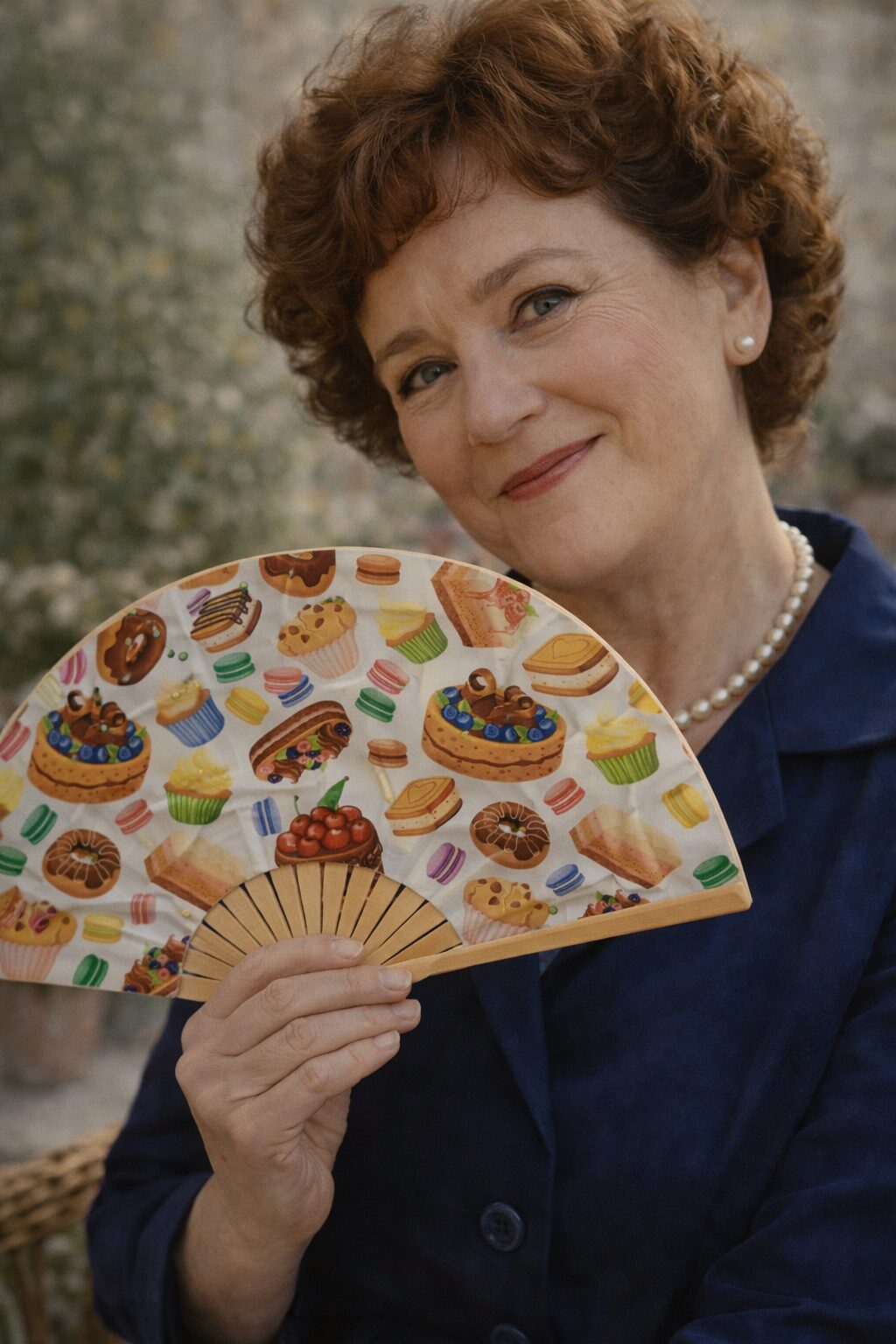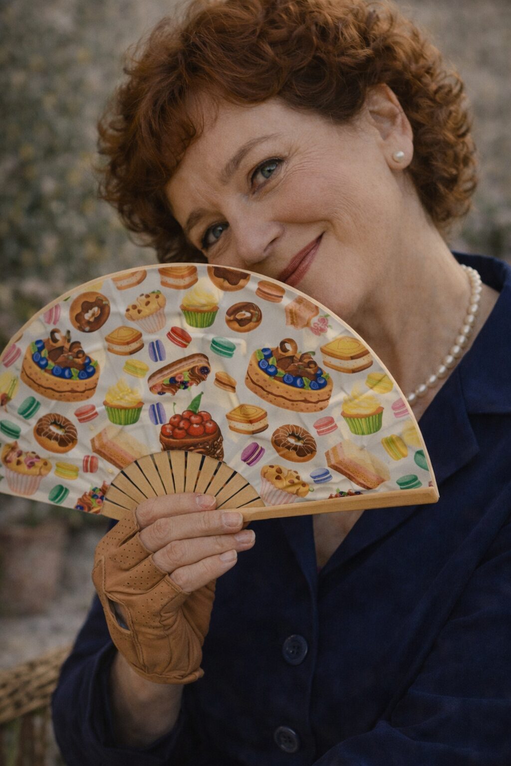 L’éventail Julia célèbre la gourmandise, la joie et l’audace de vivre pleinement. Dès le premier regard, ses motifs colorés évoquent un univers sucré, généreux et profondément réconfortant.