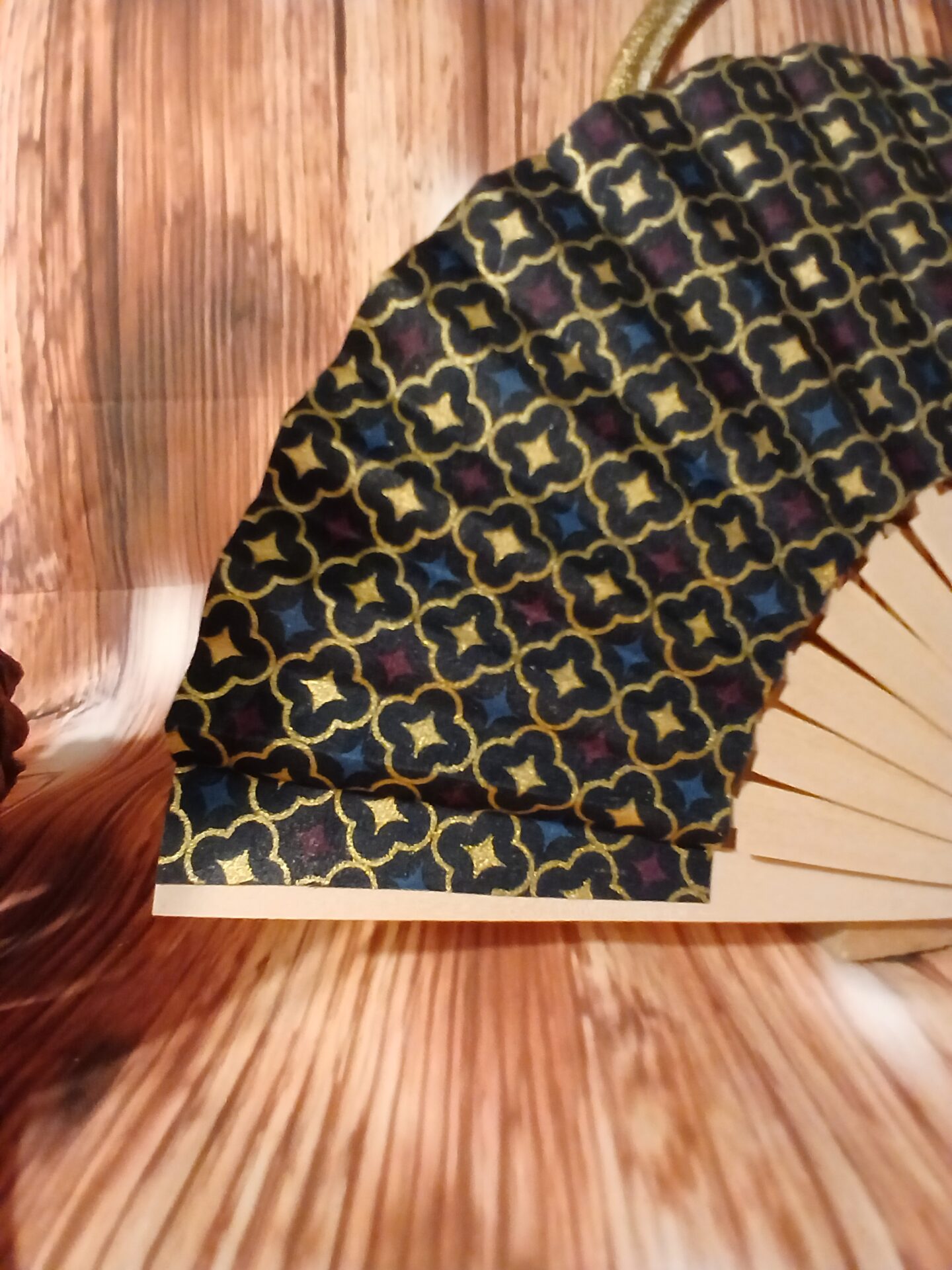 Dans la collection Hiver de Souffle d’Élégance, l’éventail Saphira vous transporte dans un conte d’opulence et d’architecture majestueuse. Son nom est inspiré du saphir, pierre précieuse d’un bleu profond, symbolisant la sagesse et la noblesse. Ainsi, cet éventail raconte l’histoire d’une princesse élégante sous les étoiles orientales. Son motif géométrique mauresque, finement dessiné en or, rappelle les ornements délicats des mosquées et des palais. Il est parfait pour une ambiance de fête et de mystère.