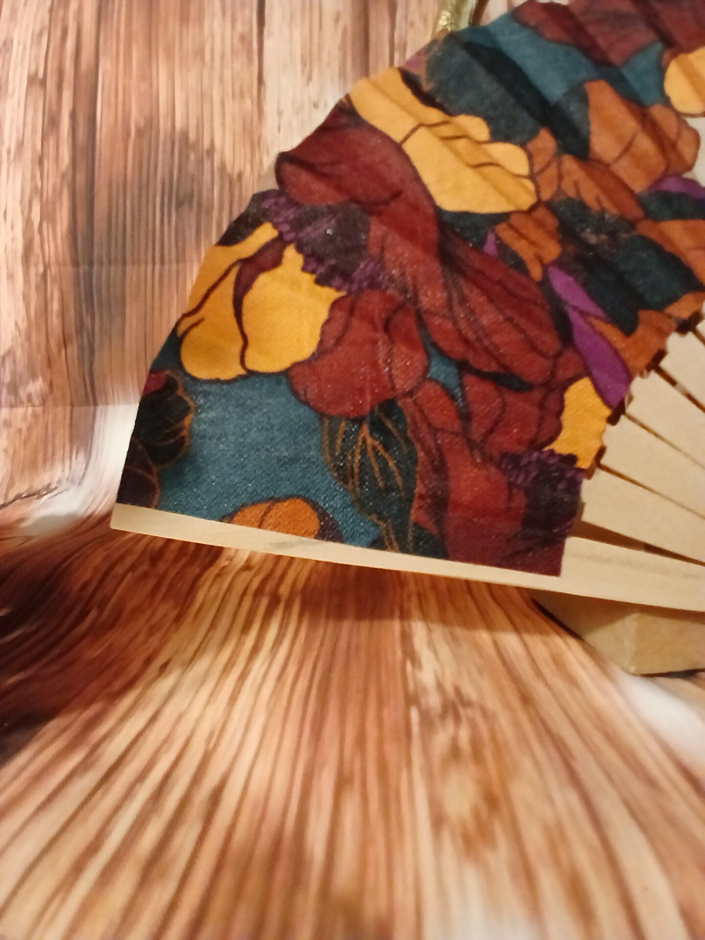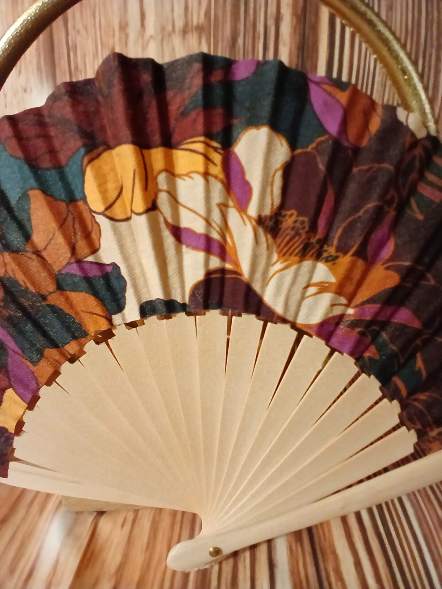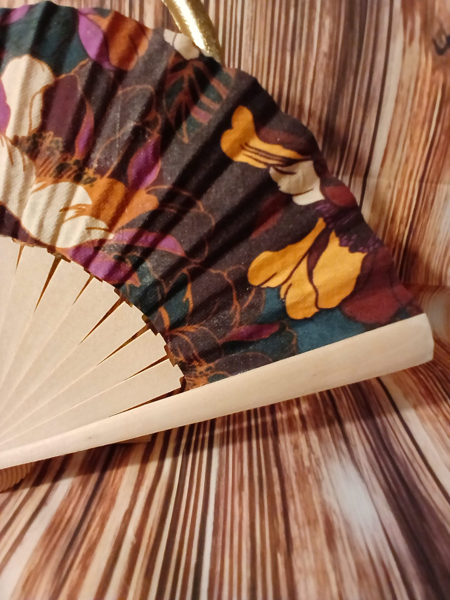 Thaïs est l’incarnation du luxe et de l’opulence. Ses motifs floraux aux couleurs intenses (fuchsia, bleu canard) et sa richesse visuelle en font un éventail floral luxe pour les occasions les plus chics.